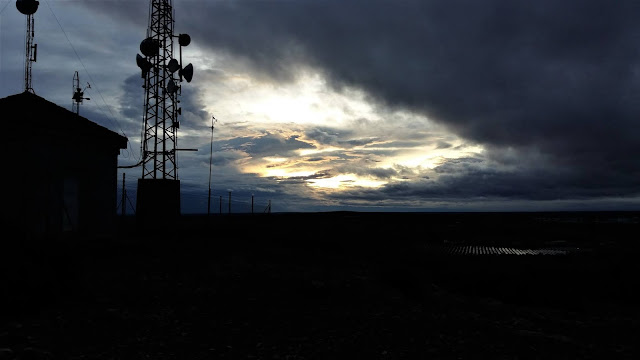 Henarejos se recuesta sobre el flanco nororiental de la muela que, en su punta sur, a unos 4km en línea recta, levanta su maciza estructura hasta los 1344msnm del Puntal, objeto de la actual excursión/ascensión. La topografía oficial le denomina PUNTAL, lo que sugiere formaciones atrevidas y destacadas que despejan hacia el vacío alguna suerte de precipicios. No es así. Las aplastadas y masivas formas que apreciamos al llegar a la población desde el Este, continúan igual en este extremo sur de la montaña. Hoy día, invadida y destrozada por una línea de aerogeneradores de 70 metros, ofrece al excursionista la sencilla satisfacción de una caseta de observación desde la que, menos mal, obtener unas vistas soberbias sobre la geografía circundante. El novedoso paradigma de las renovables y el cambio climático, que suena repetidamente en nuestros televisores igual que un eslogan de la Coca Cola, produce estos monstruos. Y la aparente contradicción de que para preservar el planeta hay que destruir sus paisajes y, sobre todos ellos, las montañas, que son, por su especial orografía, los últimos reductos del territorio natural, escasamente alterado por el hombre. Son las estupideces de nuestro tiempo, abrazadas por rebaños de cretinos que, sintiéndose profetas de esta nueva causa, llevados, lo reconozco, por buenas intenciones, no son conscientes del mal que hacen. (Además, si añadimos el asunto de feroz actualidad que es el abuso que supone pagar facturas de la luz a precio de oro, nos encontramos que a más aerogeneradores y huertos solares de aluminio y sílice venenoso, más cara pagamos la energía. Hay algo que no me cuadra. Nos están engañando. Pero, claro, para caer en la cuenta es necesario pensar un rato; cosa de la que están lejos, veo, mis congéneres de recia estirpe socialista... Este socialismo pijo que, sin embrago, se despliega con inusual violencia.)